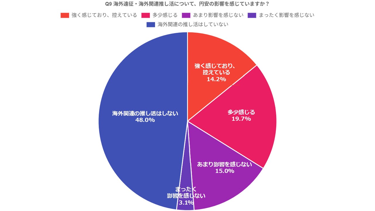 Q9:海外遠征・海外関連推し活について、円安の影響を感じていますか?(単一回答 n=127)