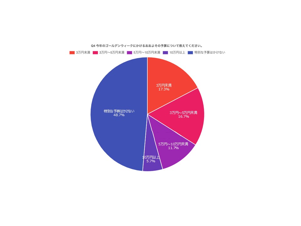 GWにかける予算については、「特別な予算はかけない」が48.7%と最多となりました。