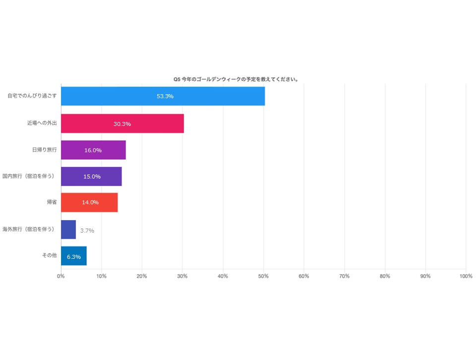 GWの予定として最も多かったのは「自宅でのんびり過ごす」(53.3%)でした。