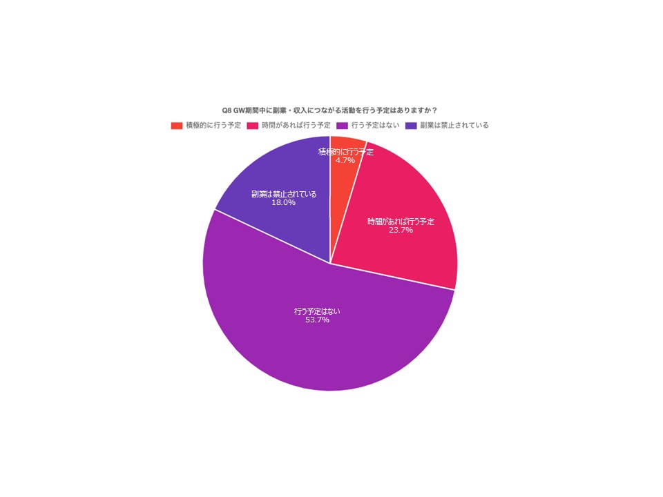 GW中の副業について聞いたところ、「行う予定はない」が53.7%で過半数を占めました。